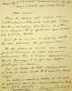 MIRBEAU (Octave). LETTRE AUTOGRAPHE SIGNÉE [À PAUL HERVIEU]. 1 page sur un bifeuillet de papier bleuté à en-tête imprimé « 3 boulevard Delessert », 18 × 13,5 cm. Remarquable lettre écrite en pleine Affaire Dreyfus. « [Paris, 21 février 1898] Cher ami, Vous n’avez pas à être touché de ces mots stupides sur vous. Hélas, depuis cette affaire, je ne puis plus rien faire ; je ne pourrais écrire que là-dessus, et je n’en ai pas le moyen. Aujourd’hui, à la sortie, nous avons été fortement hués et poursuivis. C’était admirable ! Mercredi je serai encore au procès. Pour le dernier jour, je ne puis abandonner cet admirable Zola. Ah ! J’aurais voulu que vous fussiez là, vendredi et samedi ! Ç’a été une chose que vous ne pouvez concevoir. Et vos yeux de voyant eussent vu le crime ! Le crime de Pellieux et de Boisdeffre ! Aussi visiblement que vous me voyez quand je suis devant vous. Ce sont de bien grands bandits. Et cet Esterhazy ! Ah ! Lui du moins, c’est un gredin magnifique ! Je vous embrasse bien tendrement. Octave Mirbeau » Cette lettre est restée inédite jusqu’en 2017, lors de la parution d’un article de Pierre Michel : « Lettres inédites d’Octave Mirbeau à Paul Hervieu », dans les « Cahiers Octave Mirbeau », n° 24, 2017, pages 163-207. Cette lettre y figure sous le numéro 51. C’est cet article qui nous permet d’apporter les précisions suivantes : — « [c]es mots stupides sur vous » : allusion à un article paru dans le Journal du 20 février. — Zola se trouve en procès depuis le 7 février et Mirbeau, qui l’accompagne chaque jour, lui tient parfois lieu de garde du corps. — « [j]e n’en ai pas le moyen » : « Les colonnes du Journal lui seraient fermées s’il y développait des analyses dreyfusardes » (Pierre Michel, article cité). — « à la sortie » : à la sortie du tribunal, où le procès de Zola s’est tenu du 7 au 23 février 1898. — « Mercredi » désigne le 23 février — il s’agit bien du dernier jour du procès de Zola.