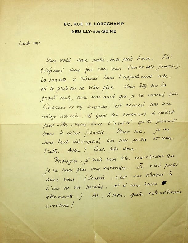 Claude Aveline (1901-1992), poète, écrivain. L.A.S., Neuilly-sur-Seine, sd [ca.1933], 2p in-4. Belle lettre amicale à une amie Simon (il s'agit bien d'une femme prénommée Simon). [407]