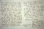 Lettre autographe signée de 4 pages datée du 12 novembre 1851. 124 lignes à l'encre noire. Le manuscrit est présentésous une chemise en demi maroquin vert sapin, plats de papier vert marbré portant une pièce de maroquin avec lamention "Lettre autographe" incrustée sur le premier plat, contreplats doublés d'agneau vert,étui bordé du même maroquin, ensemble signé Goy & Vilaine. Lettre autographe inédite sur le progrès, signée de Pierre-Joseph-Marie Proudhon, figure incontournable de la pensée sociale française, et «père de l'anarchie» selon le président de la République française Armand Fallières. Le philosophe emprisonné depuis 1849 développe dans un style virulent et combatif ses convictions socialistes et condamne les absolutismes de son temps. Extraordinaire profession de foi philosophique, politique et sociale d'un penseur à la marge, dont la fortune critique et l'influence se retrouvent de Karl Marx à Émile Durkheim en passant par Benjamin Tucker. La missive est rédigée d'une écriture rapide et dense, comportant de nombreux passages soulignés appuyant certains concepts philosophiques. Le premier feuillet présente un en-tête du journal Le Peuple de 1850, un des quatre journaux dirigés par Proudhon sous la seconde République, qui lui valurent d'être emprisonné pour «incitation à la haine du gouvernement» «provocation à la guerre civile» et «attaque à la Constitution et à la propriété». Cette lettre inédite, datée du 12 novembre 1851, constitue une réflexion passionnée et inédite, proche d'une lettre intitulée «De l'Idée de Progrès», écrite une dizaine de jours plus tard, que Proudhon publie avec une autre («De la Certitude et de son criterium») dans l'ouvrage Philosophie du progrès. Cet ensemble de textes fut composé seulement deux semaines avant la prise de pouvoir définitive de Louis-Napoléon Bonaparte, à laquelle il s'opposa immédiatement. Une fois sorti de prison en 1852, Proudhon publia les deux lettres chez Lebègue à Bruxelles afin d'échapper à la censure, qui avait interdit la vente de l'opuscule sur le territoire français. Déjà détenu depuis deux ans dans les geôles du futur empereur des Français, Proudhon écrit depuis la prison de Sainte-Pélagie à Romain Cornut, journaliste de La Presse, qui venait de terminer une série d'articles sur le positivisme d'Auguste Comte (Etudes critiques sur le socialisme, octobre-novembre 1851). Il faut voir cette lettre comme un admirable plaidoyer de quatre pages, ou plutôt une confession de sa vision socialiste du progrès, un «positivisme social» qui se fonde sur la remise en cause de l'ordre ancien: «on recule devant une négation intellectuelle, qui est la condition sine qua non du progrès ultérieur». Proudhon tente dans cette lettre de convaincre son destinataire du bien-fondé de ses convictions, et n'hésite pas à user de flatteries qui contrastent étrangement avec sa verve habituelle («Ce n'est pas croyez-le bien, [..] que je désire le moins du monde influencer votre opinion, quelque désir que j'aie de faire la conquête d'un esprit aussi judicieux que le vôtre»). Il établit au fil de la lettre un équilibre entre son âme de polémiste et son désir de légitimité, aspirant à être reconnu par ses pairs non plus comme un simple agitateur mais comme un véritable penseur. On se souvient en effet de ses célèbres traits d'esprit («la propriété c'est du vol?!»), ses sympathies pour les soulèvements de 1848 ainsi que ses pamphlets au vitriol dans Le Peuple qui avaient consacré sa réputation de radical: «J'ai été, jusqu'à ce jour, si sottement jugé, même par les socialistes [...] Parce que j'ai conduit la critique des vieux principes aussi loin qu'elle pouvait aller [...] je n'apparais encore à beaucoup de gens comme la négation pure et simple de tout ce qui est». Proudhon affirme cependant son intention de quitter les remparts de la critique («laissant pour le moment la polémique de circonstance, dans mes nouvelles études») et annonce ainsi à demi-mots l'écritur