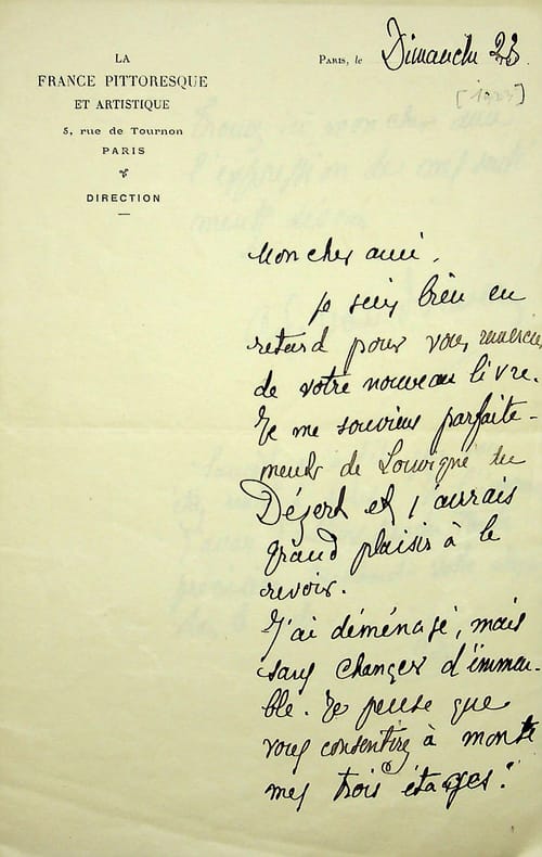 Adolphe van Bever (1871-1927), poète, écrivain, bibliographie. L.A.S., dimanche 23 [1923], 2p in-8. Au poète et écrivain Fernand Fleuret (1883-1945). Lettre amicale pour le remercier de l'envoi d'un livre. [409]
