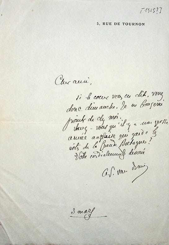 Adolphe van Bever (1871-1927), poète, écrivain, bibliographie. L.A.S., 3 mars [1915?], 1p in-8. Au poète et écrivain Fernand Fleuret (1883-1945). Invitation. [409]