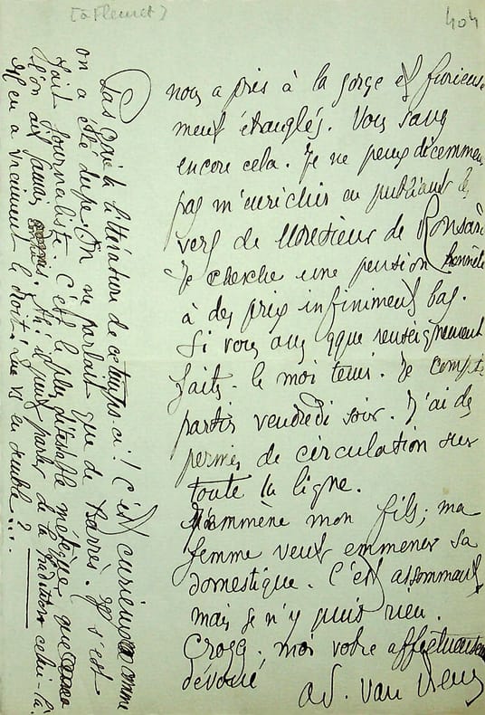 Adolphe van Bever (1871-1927), poète, écrivain, bibliographie. L.A.S., sd [jeudi], 1p 1/2 in-8. Au poète et écrivain Fernand Fleuret (1883-1945). Lettre amicale, mentionnant une trouvaille de Fleuret payée trente huit francs. [410]