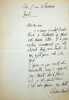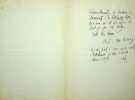 Adolphe van Bever (1871-1927), poète, écrivain, bibliographie. L.A.S., sd [août ou septembre 1915 ?], 1p in-12. Au poète et écrivain Fernand Fleuret (1883-1945). Petite lettre amicale de nouvelles alors que van Bever est en voyage dans le sud de la France, d'une écriture plus petite et plus serrée qu'à son habitude. [409]
