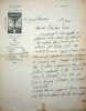 Henri Gauthier-Villars dit Willy (1859-1931), écrivain. L.A.S., sd [1902], 2p in-8. A Alfred Vallette (1858-1935) appelé ici « Cher Vieux » (écrit d'une encre différente). Importante lettre pour l'édition de Claudine en ménage. « Je n'ai pu me faire recevoir, vers 6 heures Œ malgré mes coups de sonnettes éperdus. Alors, j'en ai . que vous étiez absent. Dites-moi, Simonis Empis m'écrit de lui apporter Claudine. Mais nous sommes bien d'accord, n'est-ce pas ? Je vais lui répondre que je marche avec vous ? ». Suite une note « Il n'y a pas d'urgence, de nous voir, n'est-ce pas ? On ne peut guère paraître en période électorale ». Suit ensuite ses disponibilités. 1902 est en effet une année d'élection. Claudine paraît, pour ses deux premiers volumes chez Ollendorff. Willy change d'éditeur pour le troisième, Claudine en ménage, et cette lettre prouve donc que H Simonis Empis aurait bien voulu l'éditer. Il avait déjà publié plusieurs ouvrages de Willy. Finalement, c'est bien Vallette et donc le Mercure de France qui le publiera. Très beau courrier. [291]