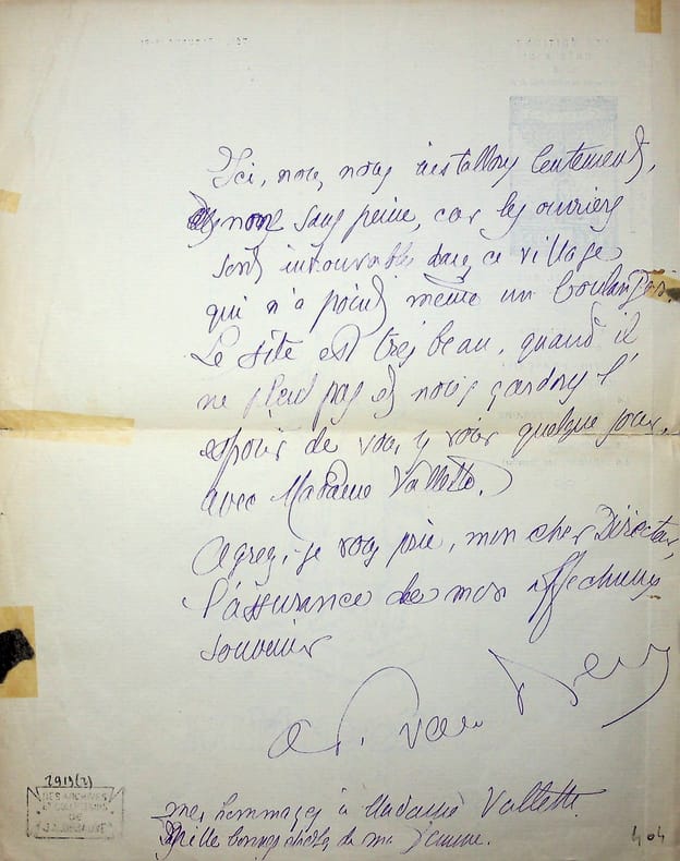 Adolphe van Bever (1871-1927), poète, écrivain, bibliographie. L.A.S., 18 mai [1925], 2p in-8. A l'éditeur et écrivain Alfred Vallette (1858-1935). A propos d'une affaire Claudel qui va être réglée promptement. On joint une lettre de sa femme à Vallette, sur le même papier, alors que van Bever est malade. [410]