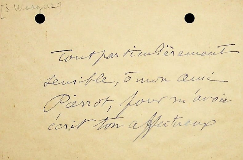 Léon Xanrof (1867-1953), écrivain, chansonnier, compositeur. L.A.S., sd, 2p in-12. Remerciements à « Pierrot » i.e. le mime Georges Wague (1874-1965). [411]