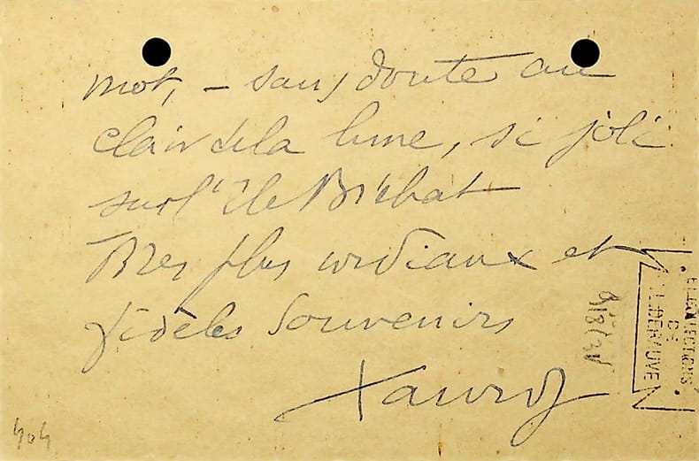 Lettre autographe signée de Félix Fénéon adressée à Gabriel Mourey, 18 lignes à l'encre noire, traces de pliure inhérentes à la mise sous pli de la lettre. Témoin et acteur privilégié de son époque, le critique d'art et collectionneur Félix Fénéon aide l'auteur Gabriel Mourey dans sa quête pourretrouver la correspondance de Paul Adam avec Maurice Barrès : "Le romancier et occultiste Paul Adam fut, comme vous savez, très lié à Maurice Barrès. (Candidats boulangistes dans deux circonscriptions lorraines contiguës, il firent fraternellement une campagne électorale et journalistique à laquelle leur amitié ne survécut guère.)Comment retrouver tous les papiers de Paul Adam, mort il y a une vingtaine d'années ? Mme Paul Adam vit-elle encore. - je n'en sais rien. Mais il est probable que vive une de ses soeurs, veuve depuis quelques trois ans de ce L. Cappielloauteur de tant d'affiches, - peintre elle aussi (et, de plus, fort sourde). Leur demeure était 8 rue Lechatelier, XVIIe. Par Mme L. Cappiello vous retrouverez peut-être des papiers barrésiens laissés par Paul Adam. Pour le cas où vous chercheriez dans cette direction, je note que que j'ai été en excellents termes avec toute la famille et que vous pouvez donc user de mon nom à votre gré." Personnalité majeure de l'Avant-garde, Fénéon avait le talent de débusquer les plus grands artistes. Cet étrange dandy volontairement discret, fit le vude servir quasi religieusement tout ce qui dans l'art forme une nouvelle sensibilité.Défenseur des néo-impressionnistes Seurat et Signac, ami de Mallarmé et de Camille Pissaro, de Paul Adam, Gustave Kahn, anarchiste puis communiste, directeur d'une douzaine de petites revues, il publia des uvres neuves telles les Illuminationsde Rimbaud, lePaludesd'André Gide,Dédalusde James Joyce. Prolifique journaliste, il écrivit partout et ne signa pas ses articles ou emprunta même des pseudonymes extravagants comme Gil de Bache, Porphyre Kalouguine, voire Thérèse ou Louise. Rare lettre de Félix Fénéon sur ses contemporains. Nous y joignions une lettre autographe signée de Fanny Fénéon, femme de Félix Fénéon, datée du 30 décembre 1941 alors que son mari était malade et alité, 10 lignes à l'encre noire, traces de pliure inhérentes à la mise sous pli de la lettre. "Mon mari gravement malade est dans l'impossibilité de recevoir quelqu'un. Si la difficultéque vous désirez lui remettre peut se résoudre par lettre, veuillez lui dire ce dont il s'agit. Une réponse immédiate vous montrera que malgré ses 80 ans, il est tout à votre disposition. [...]" - Photographies et détails sur www.Edition-Originale.com -