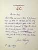 Jules Claretie (1840-1913), écrivain, administrateur général de la Comédie-Française. C.A.S., sd, 1 lignes. A l'écrivain et journaliste Eugène d'Auriac (1815-1891). « avec ses remerciements plus dévoués. J Cl ». On joint deux signatures découpées dont une belle signature « Jules Claretie de l'Académie Française ». Cachet de la collection Jean-Louis Debauve. [412]