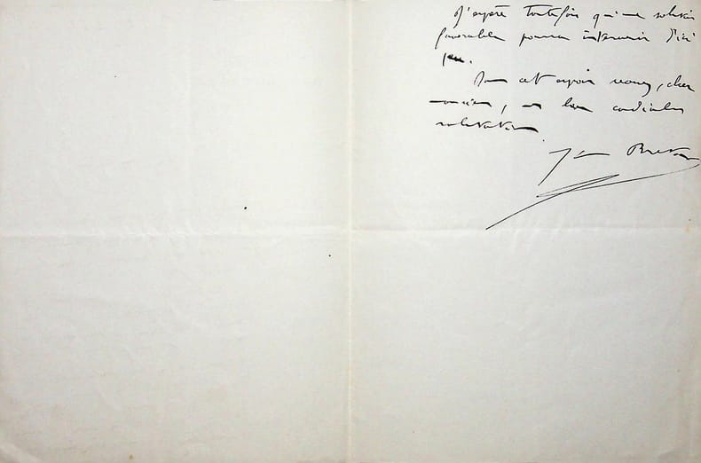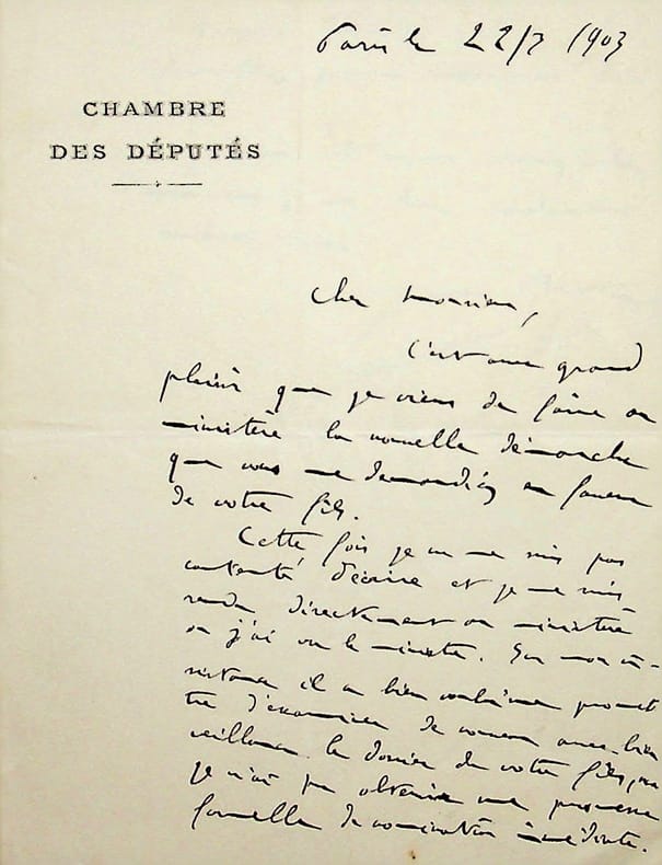 Jules-Louis Breton (1872-1940), inventeur, journaliste, homme politique, député puis sénateur. L.A.S., Paris, 22 mars 1903, 1p 1/2 in-12. Il a fait la démarche demandée par son correspondant au ministre. [413]