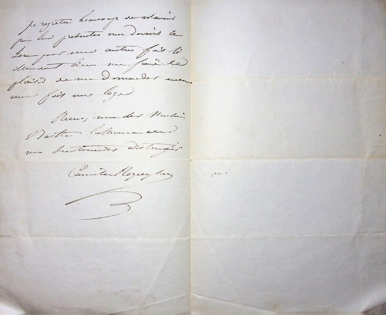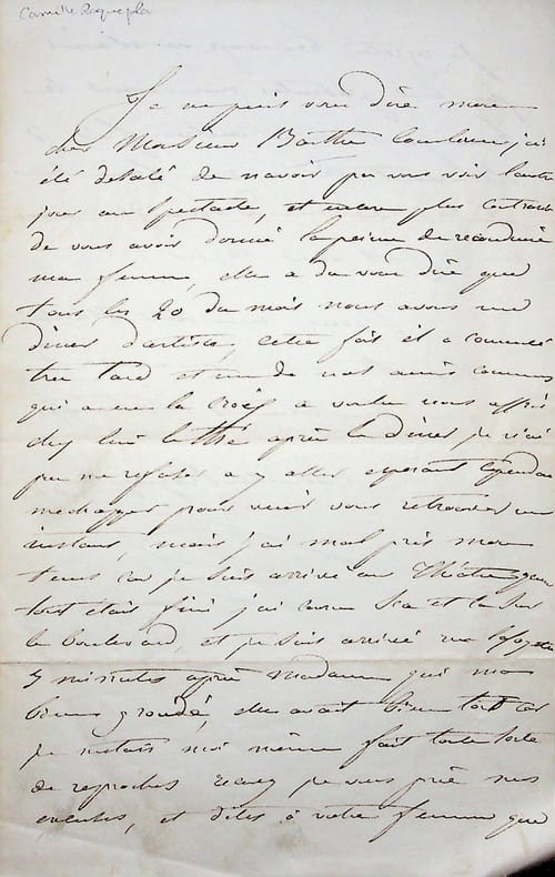 Camille Roqueplan (1803-1855), peintre. L.A.S., 1p 1/2 in-8. Jolie lettre à monsieur Barthe. Il n'a pu venir au théâtre, ayant son « dîner d'artiste », et le remercie d'avoir raccompagné sa femme. [415]