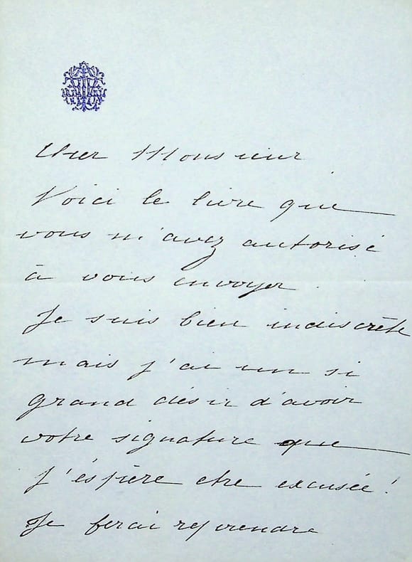 Lettre de remerciements à Paul Fort suite à l'envoi d'un exemplaire des "Ballades françaises" 2e série. Remerciements non exempts d'un certain paternalisme. * Voir photographie(s) / See the picture(s). * Membre du SLAM et de la LILA / ILAB Member. La librairie est ouverte du lundi au vendredi de 14h à 19h. Merci de nous prévenir avant de passer,certains de nos livres étant entreposés dans une réserve.