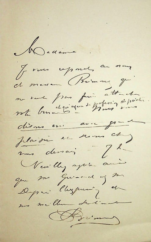 Léon Brémont (1852-1939), acteur, écrivain. L.A.S., sd, 1p in-8. Au poète Edouard Guinand (1838-1909). Ils acceptent l'invitation de son correspondant le lendemain. [417]