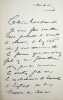 Edmond Fuchs (1837-1889), géologue, ingénieur. L.A.S., 31 mars 1888, 1p in-12. Au poète Edouard Guinand (1838-1909). Difficile à déchiffrer. [416]