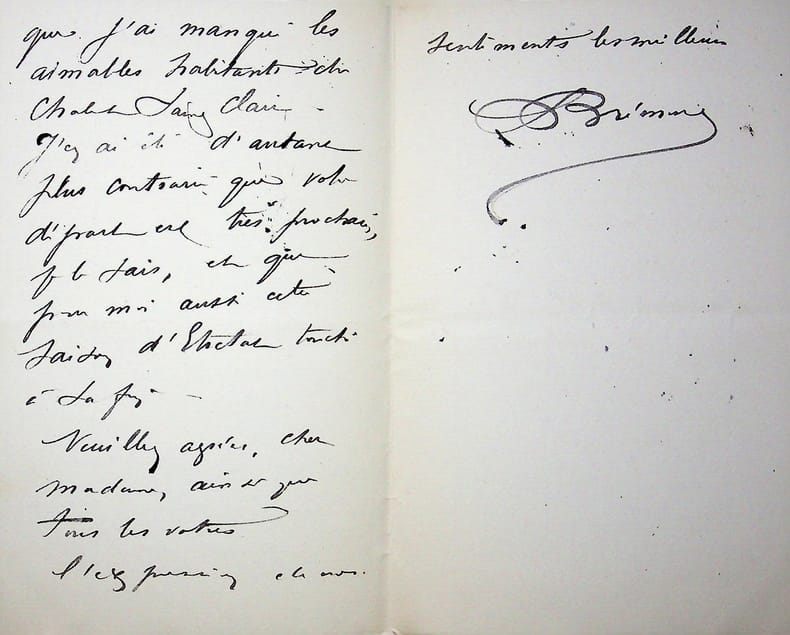 Léon Brémont (1852-1939), acteur, écrivain. L.A.S., sd, 2p 1/2 in-8. A l'épouse du poète Edouard Guinand (1838-1909). Joli lettre amicale regrettant notamment de l'avoir ratée le matin au casino. [417]