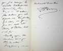 Édouard-Alfred Martel (1859-1938), spéléologue, géologue, avocat. C.A.S. « M », 8 décembre 1885, 5 lignes. Au poète Edouard Guinand (1838-1909). « Très heureux du gracieux souvenir de Monsieur Guinand, tient à exprimer à l'aimable auteur le sincère plaisir qu'il a eu à recevoir et à lire "Au courant de la vie". M. ». [416]