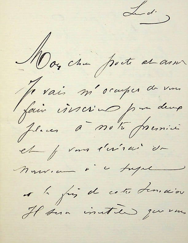 Léon Brémont (1852-1939), acteur, écrivain. L.A.S., sd [lundi], 4p in-12. Au poète Edouard Guinand (1838-1909). Longue lettre lui annonçant notamment qu'il l'a fait inscrire pour deux places à la première. [417]