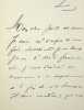 Edmond Fuchs (1837-1889), géologue, ingénieur. L.A.S., 31 mars 1888, 1p in-12. Au poète Edouard Guinand (1838-1909). Difficile à déchiffrer. [416]