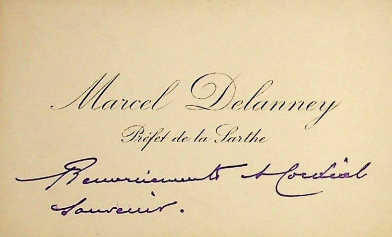 Marcel Delanney (1863-1944), préfet de la Seine. C.A., sd, 1 ligne. « Remerciements et cordial souvenir ». [415]