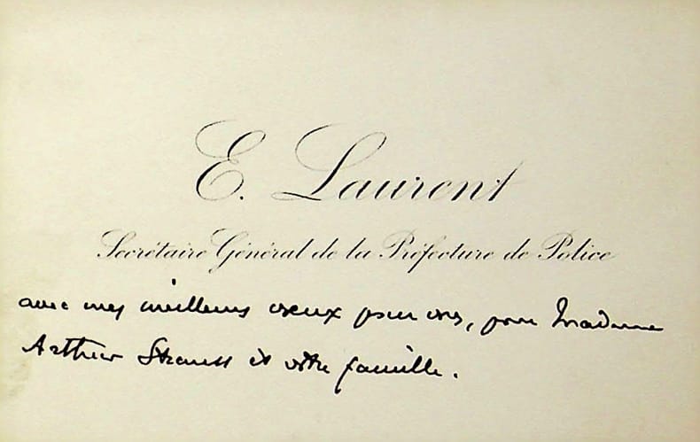 Emile Laurent (1852-1930), avocat, haut fonctionnaire. C.A., sd, 2 lignes. « Avec mes meilleurs voeux pour vous, pour madame ArthurStrauss et votre famille ». [415]