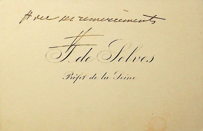 Justin de Selves (1848-1934), homme politique, préfet, député, ministre. C.A., sd, 1 ligne. « Avec ses remerciements ». [417]