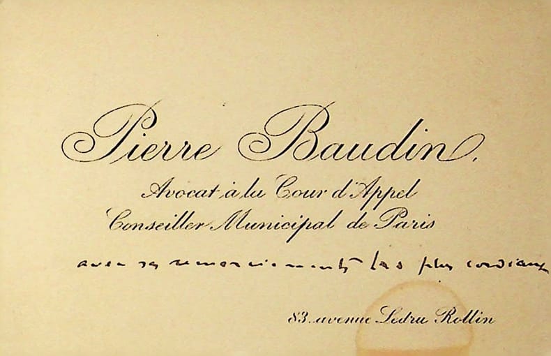 Pierre Baudin (1863-1917), avocat, homme politique, sénateur. C.A., sd, 1 ligne. « Avec ses remerciements les plus cordiaux ». [417]