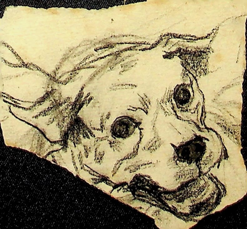 Maurice Bonvoisin dit Mars (1849-1912), dessinateur belge, illustrateur, graveur, Dessin original au crayon. Environ 70*75mm. Représentant une tête de chien. [419]