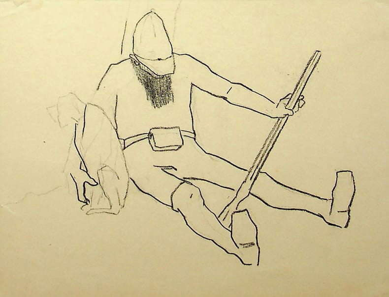 Maurice Bonvoisin dit Mars (1849-1912), dessinateur belge, illustrateur, graveur, Dessin original au crayon. Environ 121*158mm. Représentant un chasseur assis. [419]