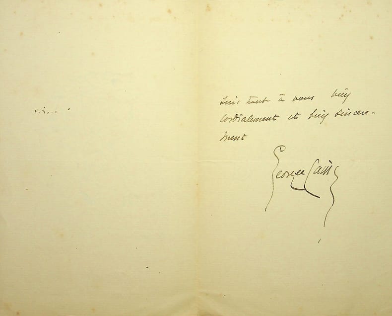 Georges Cain (1853-1919), écrivain, peintre. L.A.S., sd, 1p 1/2 in-8. Probablement à un sculpteur : « Cher Monsieur, Certainement que je viendrai. Choisissez la semaine prochaine votre jour. D'autant que j'arrive de Villerville où j'ai contemplé en compagnie et mon ami et docteur Géry les [mot illisible] où s'élèveront vos fastueuses constructions. J'ai vu vos pierres ! J'attends votre réponse et suis tout à vous. Bien cordialement et bien sincèrement. Georges Cain ». [420]