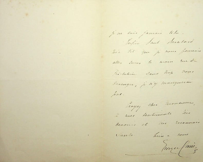 Georges Cain (1853-1919), écrivain, peintre. L.A.S., sd, 2p in-8. Belle lettre amicale. [420]