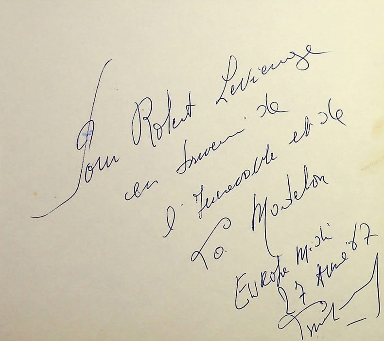 Dominique Nohain (1925-2017), acteur, scénariste, metteur en scène. P.A.S., 5 novembre 1967, 1p in-12. Extrait d'un album, « en souvenir des Escrocs de Madame et, honnêtement, avec une sympathie aussi sincère qu'au temps de c'est arrivé à 36 chandelles », deux films dans lesquels il a joué. [421]