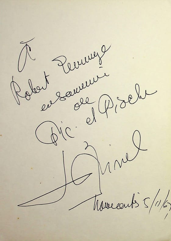 Francis Linel (1928-2022), acteur, chanteur, danseur. P.A.S., 5 novembre 1967, 1p in-8. Extrait d'un album, « en souvenir de Pic et Pioche », comédie musicale dans laquelle il a jouée avec Annie Cordy. [421]