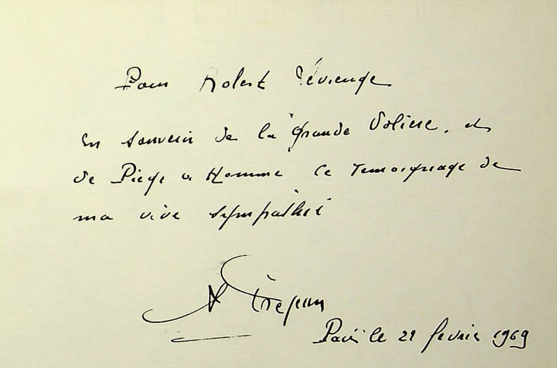 Albert Préjean (1894-1979), acteur, chanteur. P.A.S., 29 février 1969, 1p in-12. Extrait d'un album, « en souvenir de la Grande volière et de Piège à hommes », deux films dans lesquels il a joué. [421]