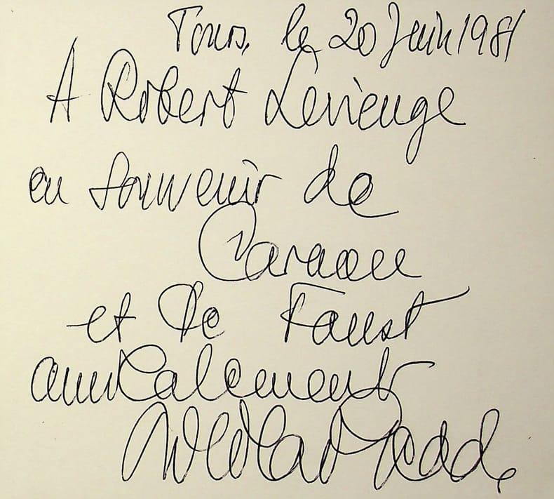 Nicolai Gedda (1925-2017), ténor suédois. P.A.S., 20 juin 1981, 1p in-12. Extrait d'un album, « en souvenir de Carmen et de Faust », deux opéras qu'il a chantés. [422]
