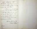 André Dupin dit Dupin aîné (1783-1865), avocat, magistrat, homme politique. L.A.S., Paris, 23 novembre [1855], 2p in-12. Au journaliste Louis Alloury (1805-1884). Il le remercie pour ce qu'il a dit de son épouse, mort le 17 novembre, dans le Journal des Débats. Jolie lettre. [423]