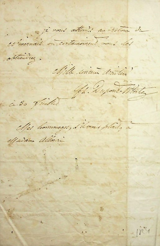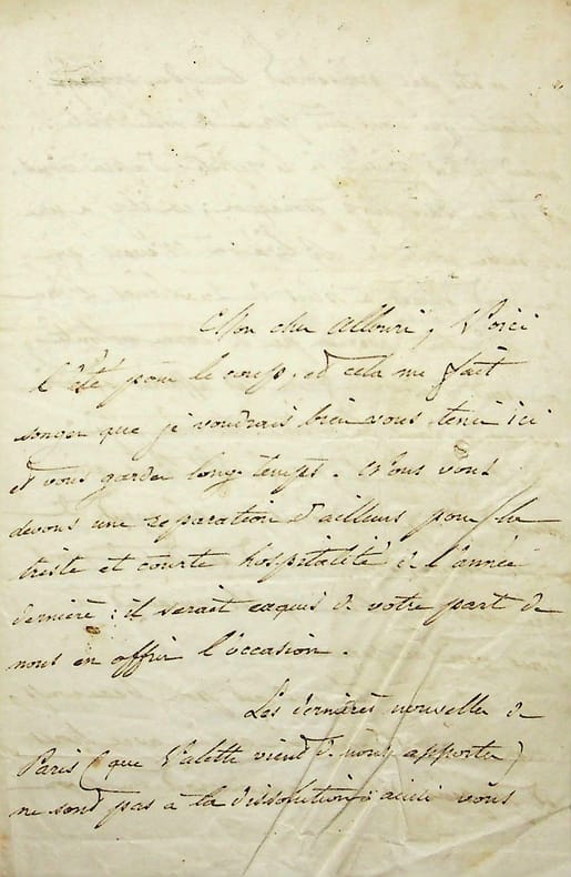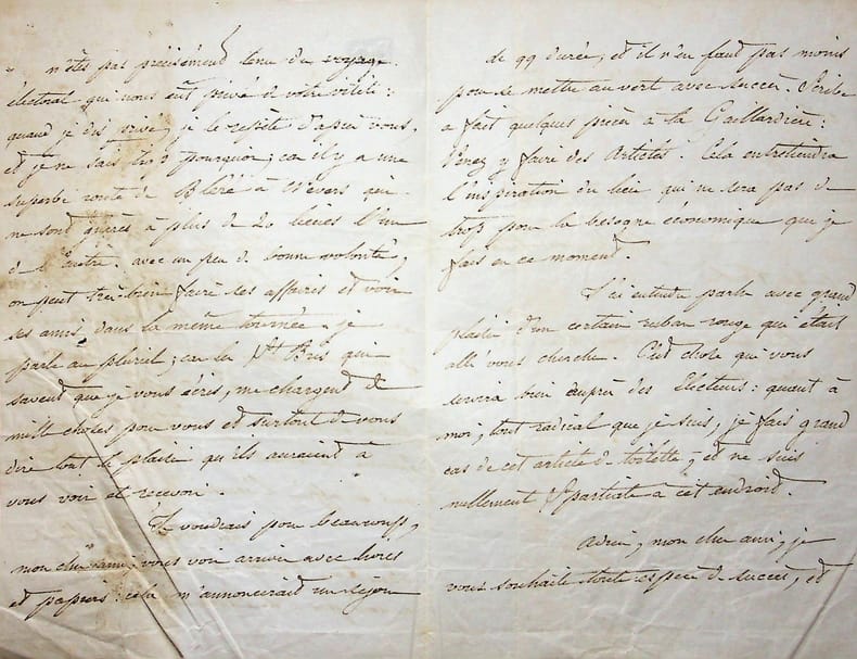 André Dupin dit Dupin aîné (1783-1865), avocat, magistrat, homme politique. L.A.S., 7 octobre, 4p in-8. Au journaliste Louis Alloury (1805-1884). Longue lettre difficile à déchiffrer. [423]