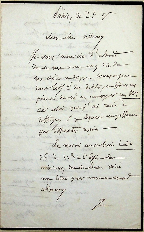 André Dupin dit Dupin aîné (1783-1865), avocat, magistrat, homme politique. L.A.S., Paris, 23 novembre [1855], 2p in-12. Au journaliste Louis Alloury (1805-1884). Il le remercie pour ce qu'il a dit de son épouse, mort le 17 novembre, dans le Journal des Débats. Jolie lettre. [423]
