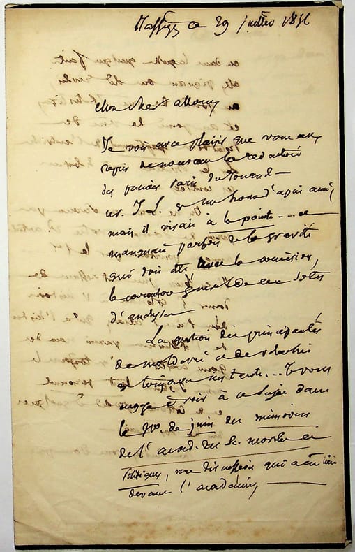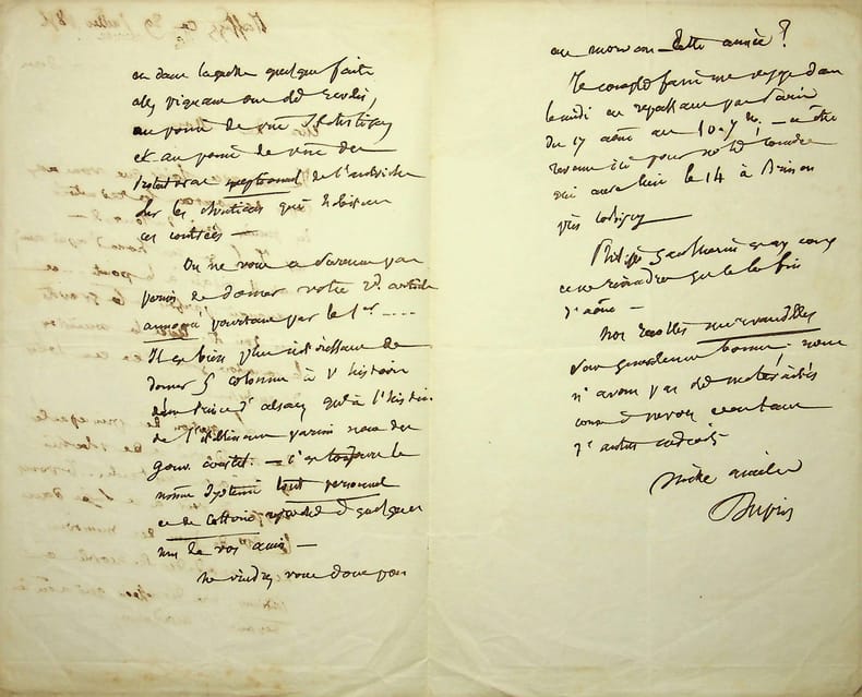 André Dupin dit Dupin aîné (1783-1865), avocat, magistrat, homme politique. L.A.S., 29 juillet 1856, 3p in-8. Au journaliste Louis Alloury (1805-1884). Longue lettre difficile à déchiffrer. [424]