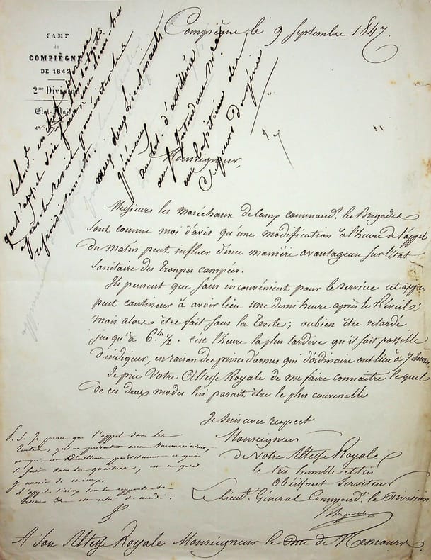 Jacques Aupick (1789-1857), général, homme politique, beau-père de Baudelaire, ministre plénipotentiaire à Constantinople. L.S. avec passage autographe, 9 septembre 1847, 1p in-4. Au duc de Nemours, afin de lui demander un avis. [426]