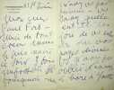 1 - Il demande de l'excuser d'écrire si mal en ce moment. Sa lettre l'a rendu content car, pour un poète, "l'estime des meilleurs,...voilà sa fortune". - 2 - Voeux pour 1935 - 3 - "Pour demander à mon ami Jacques Deval de rester fidèle, par ce temps de misère...". Il lui demande de s'interesser à ces "Chants du malheur" et à leur poète...- Jacques DEVAL (ou Jacques Boularan) (1866 - 1972) était un dramaturge, scénariste et réalisateur français par ailleurs père de Gérard de Villiers -