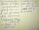 Maurice Verne (1889-1943), romancier. L.A.S., 14 janvier, 3p 1/2 in-8. Au poète Paul Fort (1872-1960). « Mon cher Paul Fort, merci de tout coeur mais je suis navré. Ce soir 3 fois impossible. [mot illisible] Pourquoi ne m'avez-vous pas prévenu ? Vous savez quelle eut été ma joie de vous entendre dire vos pages divines. Vous n'avez pas oublié d'envoyer le livre à Yvette. Vous aurez des places pour l'opéra soit pour demain soit pour lundi. A vous de coeur et à madame. Maurice Verne. Rien à faire pour l'édition !!! Ah mon dieu, je crois bien que je vais finir par foutre le camp ». [427]