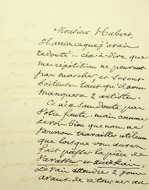Pierre Carmouche (1797-1868), poète, chansonnier, goguettier, écrivain. L.A.S., sd, 2p in-12. A l'écrivain Philippe-Jacques de Laroche dit Hubert (1765-1837). A propos des répétitions d'une pièce qui se passent mal car « il nous manquera 2 artistes ». [178b]