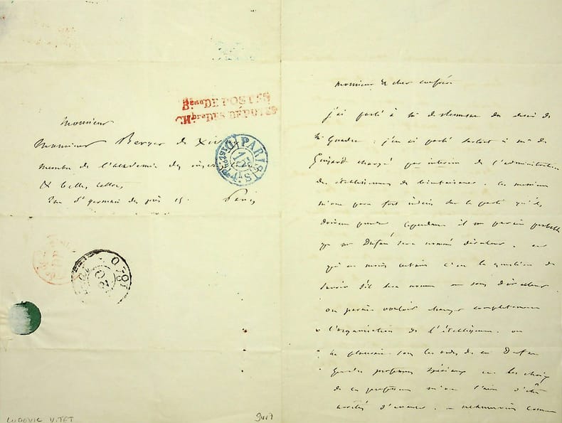 Ludovic Vitet (1802-1873), écrivain, homme politique. L.A.S., 20 mai 1840, 2p in-8. A Jules Berger de Xivrey (180&-1863), bibliothécaire et historien. A propos d'une personne recommandée par Xivrey pour une place. Vitet détaille ce qu'il a fait. [179b]