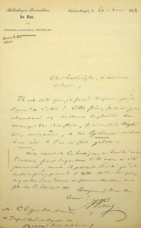 Jean Vatout (1791-1848), écrivain, homme politique, membre de l'Académie française. L.A.S., 20 mars 1844, 1p in-8. A Jean Clogenson (1785-1876), homme politique. Lettre amicale. [180]
