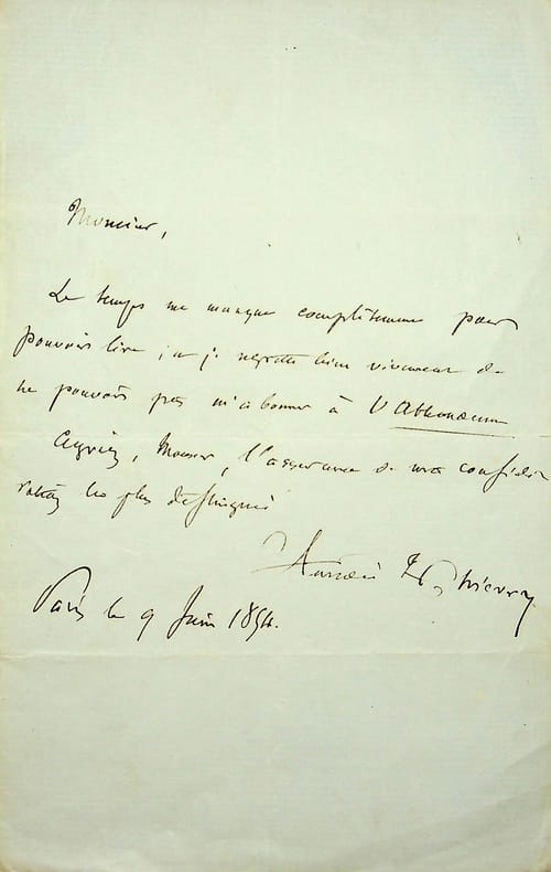 Amédée Thierry (1797-1873), journaliste, historien. L.A.S., Paris, 9 juin 1854, 1p in-8. Il ne peut s'abonner au journal de son correspondant. [180]