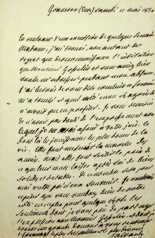 Narcisse-Achille de Salvandy (1795-1856), homme politique, écrivain, ministre, député, ambassadeur, membre de l'Académie française. L.A.S., Graveron, 11 mai 1830, 1p in-8. A Rose Mame (1797-1866), épouse du libraire Charles Gosselin et membre de la fameuse famille de libraire angevine puis tourangelle. Lettre amicale regrettant d'avoir été absent quand le couple Gosselin l'avait invité. [180]