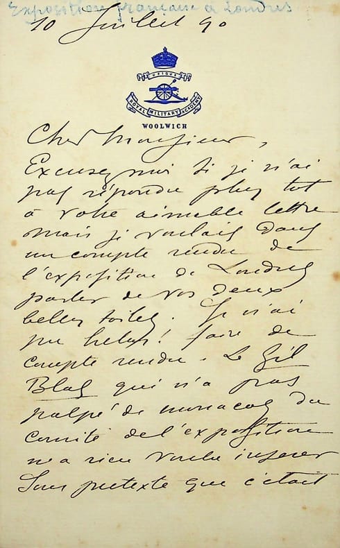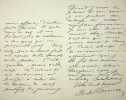 Hector France (1837-1908-, écrivain, journaliste. L.A.S., 19 juillet 1890, 3p in-8. Au peintre Marius Perret (1851-1900). « Cher Monsieur, Excusez-moi si je n'ai pas répondu plus tôt à votre aimable lettre mais je voulais dans un compte-rendu de l'exposition de Londres parler de vos deux belles toiles. Je n'ai pu hélas ! faire de compte-rendu. Le Gil-Blas qui n'a pas palpé de menaces du comité de l'exposition n'a rien voulu insérer sous prétexte que c'était une affaire d'entreprise privée et que dans ce cas, il ne faisait pas de réclame à des gens qui ne payaient pas. Vous avez par ce seul fait un aperçu de la vénalité de la presse. C'est ignoble, mais c'est ainsi. L'intérêt de nos nationaux est sacrifié à celui de la caisse de nos pontifes de journaux. Quand j'aurai le plaisir de vous voir, je vous parlerai in extenso de cette exposition française. Je suis allé dernièrement chez Mahé[?], c'est dire que nous avons causé de vous, je l'avais chargé de m'excuser en attendant que je le fis moi-même. Au revoir, cher Monsieur, agréez je vous prie mes cordiales salutations. Votre tout dévoué. Hector France ». [185]