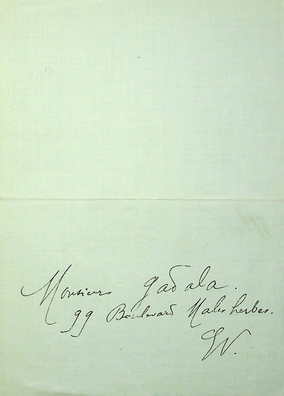 Lettre autographe signée de Félix Fénéon adressée à Gabriel Mourey, 18 lignes à l'encre noire, traces de pliure inhérentes à la mise sous pli de la lettre. Témoin et acteur privilégié de son époque, le critique d'art et collectionneur Félix Fénéon aide l'auteur Gabriel Mourey dans sa quête pourretrouver la correspondance de Paul Adam avec Maurice Barrès : "Le romancier et occultiste Paul Adam fut, comme vous savez, très lié à Maurice Barrès. (Candidats boulangistes dans deux circonscriptions lorraines contiguës, il firent fraternellement une campagne électorale et journalistique à laquelle leur amitié ne survécut guère.)Comment retrouver tous les papiers de Paul Adam, mort il y a une vingtaine d'années ? Mme Paul Adam vit-elle encore. - je n'en sais rien. Mais il est probable que vive une de ses soeurs, veuve depuis quelques trois ans de ce L. Cappielloauteur de tant d'affiches, - peintre elle aussi (et, de plus, fort sourde). Leur demeure était 8 rue Lechatelier, XVIIe. Par Mme L. Cappiello vous retrouverez peut-être des papiers barrésiens laissés par Paul Adam. Pour le cas où vous chercheriez dans cette direction, je note que que j'ai été en excellents termes avec toute la famille et que vous pouvez donc user de mon nom à votre gré." Personnalité majeure de l'Avant-garde, Fénéon avait le talent de débusquer les plus grands artistes. Cet étrange dandy volontairement discret, fit le vude servir quasi religieusement tout ce qui dans l'art forme une nouvelle sensibilité.Défenseur des néo-impressionnistes Seurat et Signac, ami de Mallarmé et de Camille Pissaro, de Paul Adam, Gustave Kahn, anarchiste puis communiste, directeur d'une douzaine de petites revues, il publia des uvres neuves telles les Illuminationsde Rimbaud, lePaludesd'André Gide,Dédalusde James Joyce. Prolifique journaliste, il écrivit partout et ne signa pas ses articles ou emprunta même des pseudonymes extravagants comme Gil de Bache, Porphyre Kalouguine, voire Thérèse ou Louise. Rare lettre de Félix Fénéon sur ses contemporains. Nous y joignions une lettre autographe signée de Fanny Fénéon, femme de Félix Fénéon, datée du 30 décembre 1941 alors que son mari était malade et alité, 10 lignes à l'encre noire, traces de pliure inhérentes à la mise sous pli de la lettre. "Mon mari gravement malade est dans l'impossibilité de recevoir quelqu'un. Si la difficultéque vous désirez lui remettre peut se résoudre par lettre, veuillez lui dire ce dont il s'agit. Une réponse immédiate vous montrera que malgré ses 80 ans, il est tout à votre disposition. [...]" - Photographies et détails sur www.Edition-Originale.com -