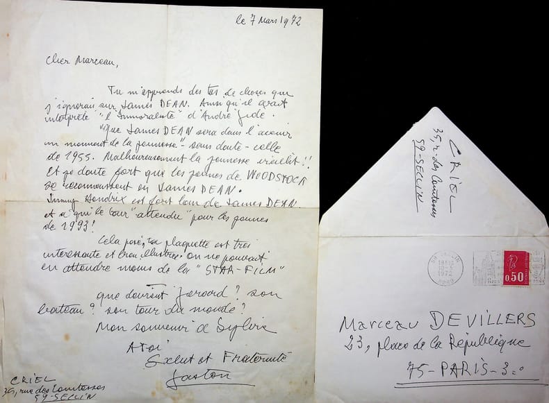 Gaston Criel (1913-1990), poète, écrivain. L.A.S. + enveloppe, 7 mars 1972, 1p in-4. A Marceau Devillers. Jolie lettre sur l'ouvrage James Dean de Marceau. [430]