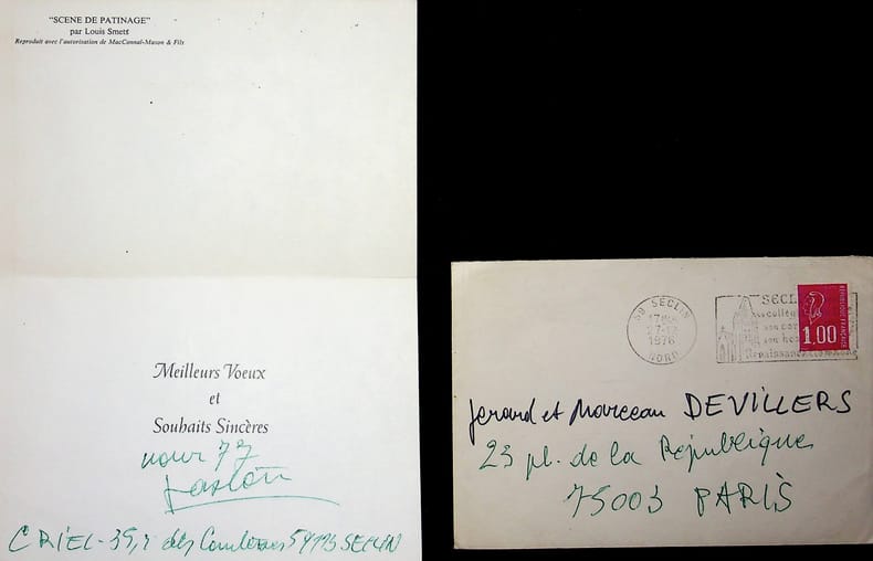 Gaston Criel (1913-1990), poète, écrivain. L.A.S. + enveloppe, 27 décembre 1976, 1p in-12. Courte lettre de voeux. [430]