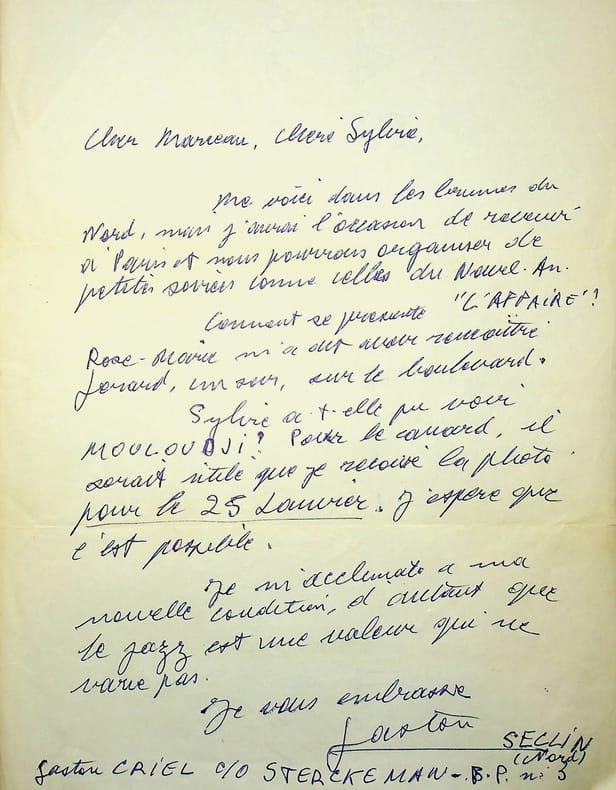 "Chère madame, j'aurai eu pourtant une belle joie à vous revoir, ainsi que Ginette Forot, mais il m'est impossible de me déplacer en ce moment. Je serai de tout coeur avec vous. Je n'ai pu joindre Georges Oberti, je pense qu'il est en Corse. Croyez chère madame à mes sentiments les meilleurs. Ph. Chabaneix".